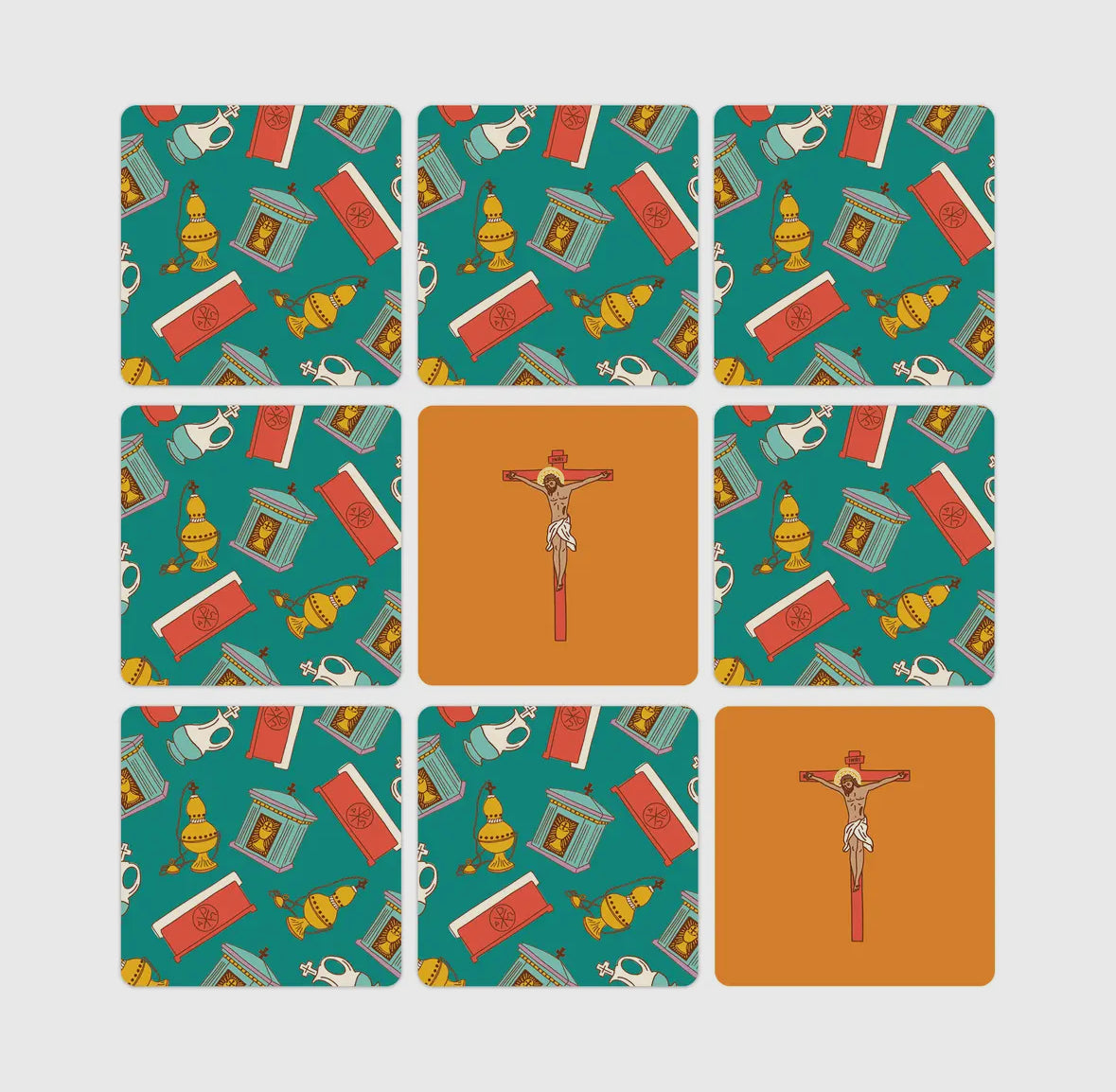 Strengthen matching skills and explore the richness of the Mass with our Mass Memory Game. Created for both fun and learning, it guides children in recognizing and understanding the essential elements of the Mass through an engaging, interactive experience.